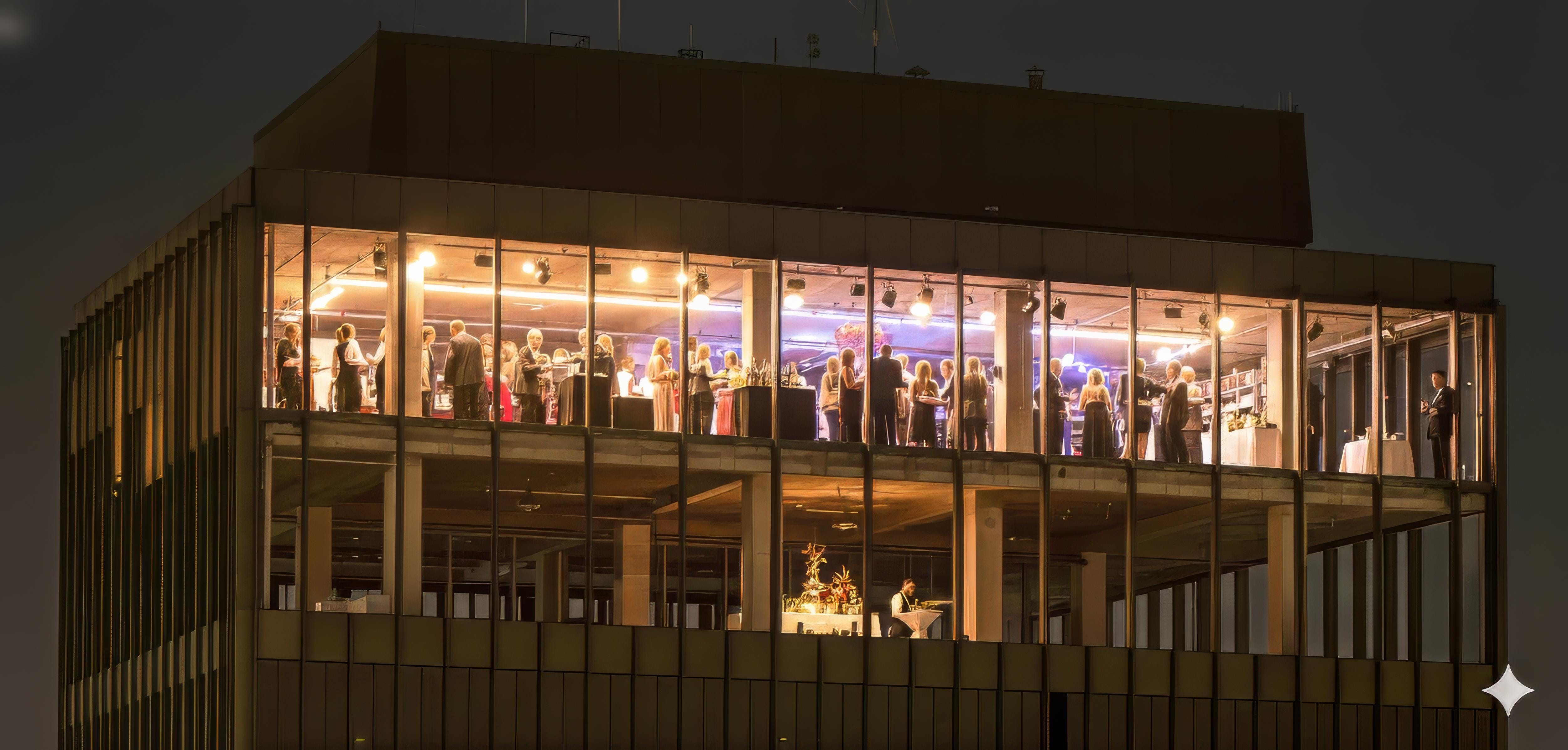 The top two floors of the building, the former jail, have been said to be the hardest of the floors to deal with and retrofit for other uses, but perhaps this could be simplified by making those floors an open-air blow-through space for events. Remove the non-essential innards, retain maybe just enough enclosed space for a catering kitchen or prep space. Connect the floors with a staircase so both levels could be used for the same event. I’d love to see the fabulous Hunstville Symphony Orchestra try out the space for a concert, and serenade the whole Square. The closest thing Google Gemini could spit out for a concept image is this, which shows a room with windows, not a blow-through. But it imparts a very rough idea at least.