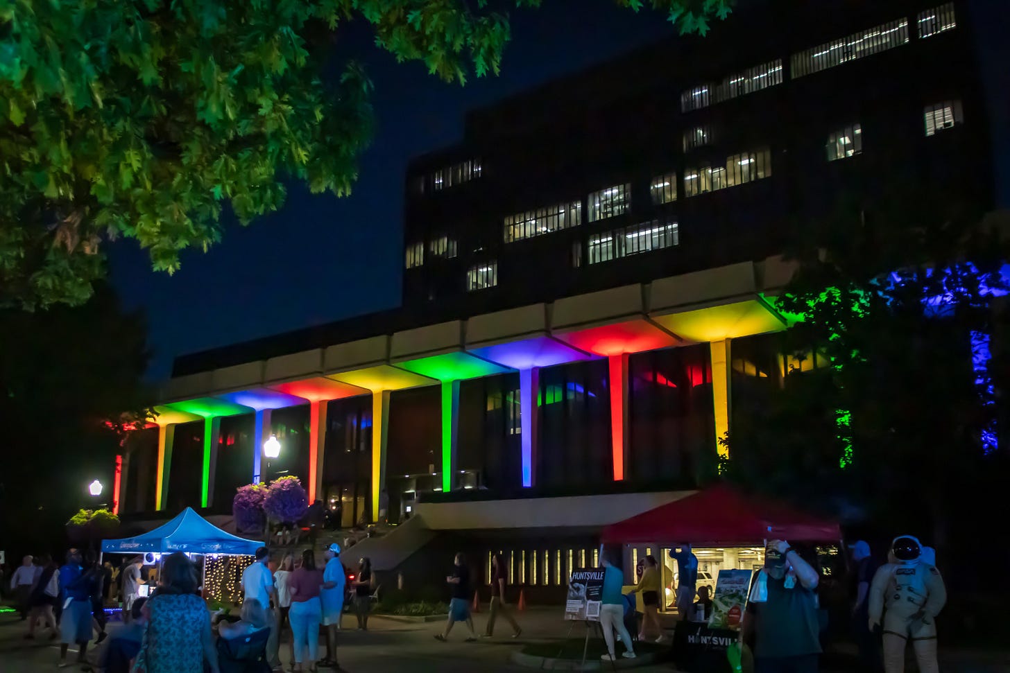 What started to shift my opinion was seeing it — and more importantly, photographing it — with the columns lit up in colors during Huntsville’s summer 2022 celebration of being named Best City to Live in the United States by U.S. News and World Report.