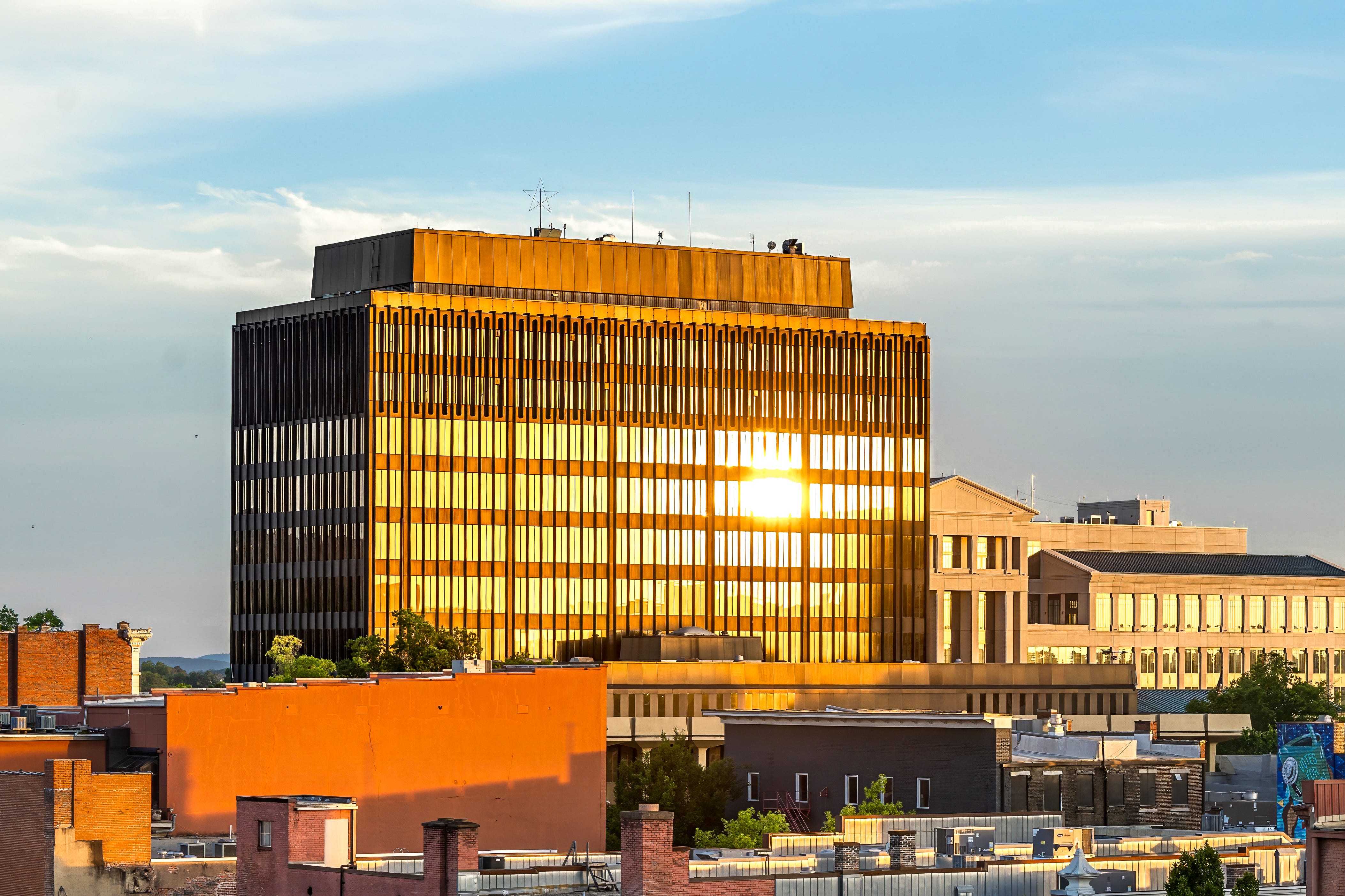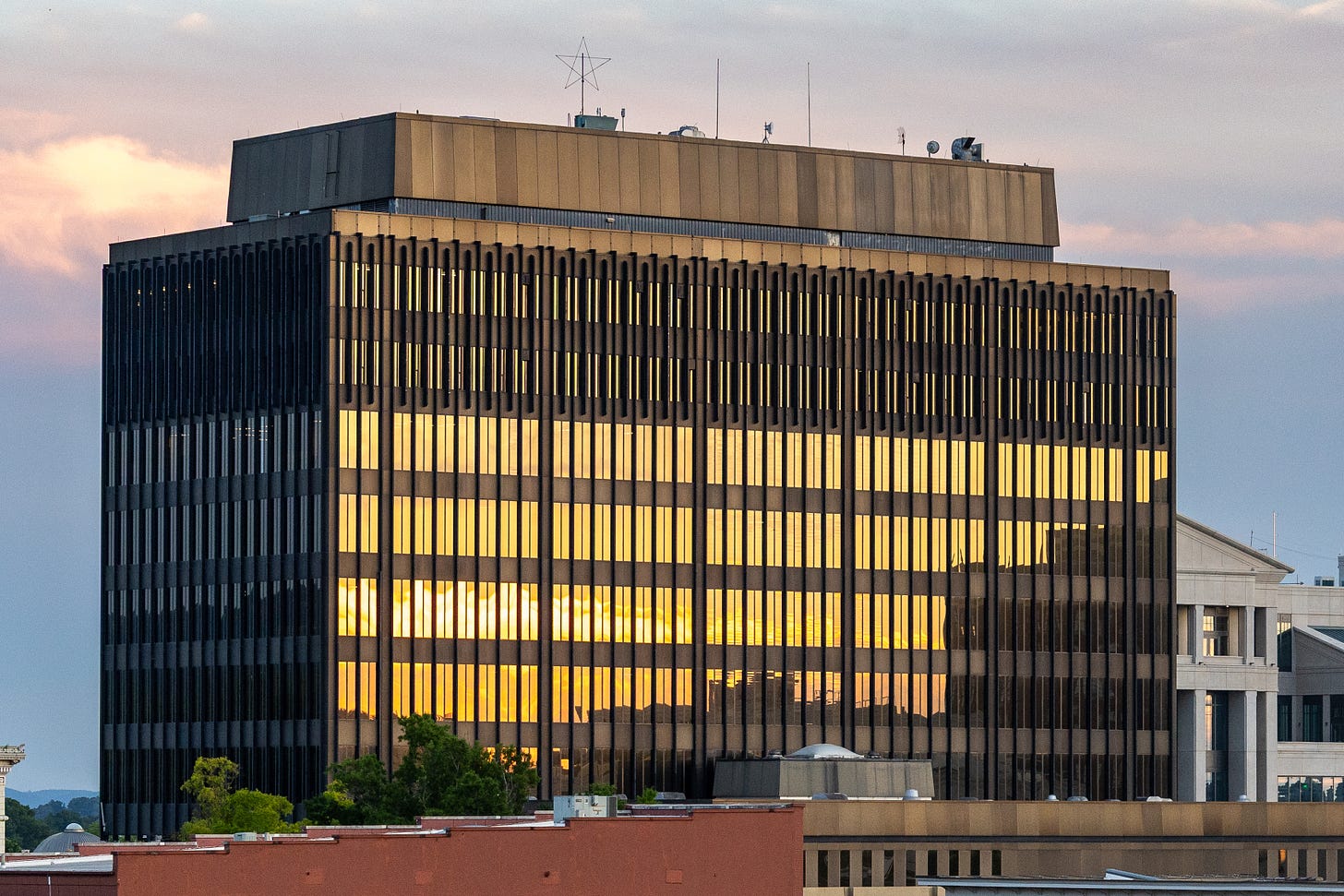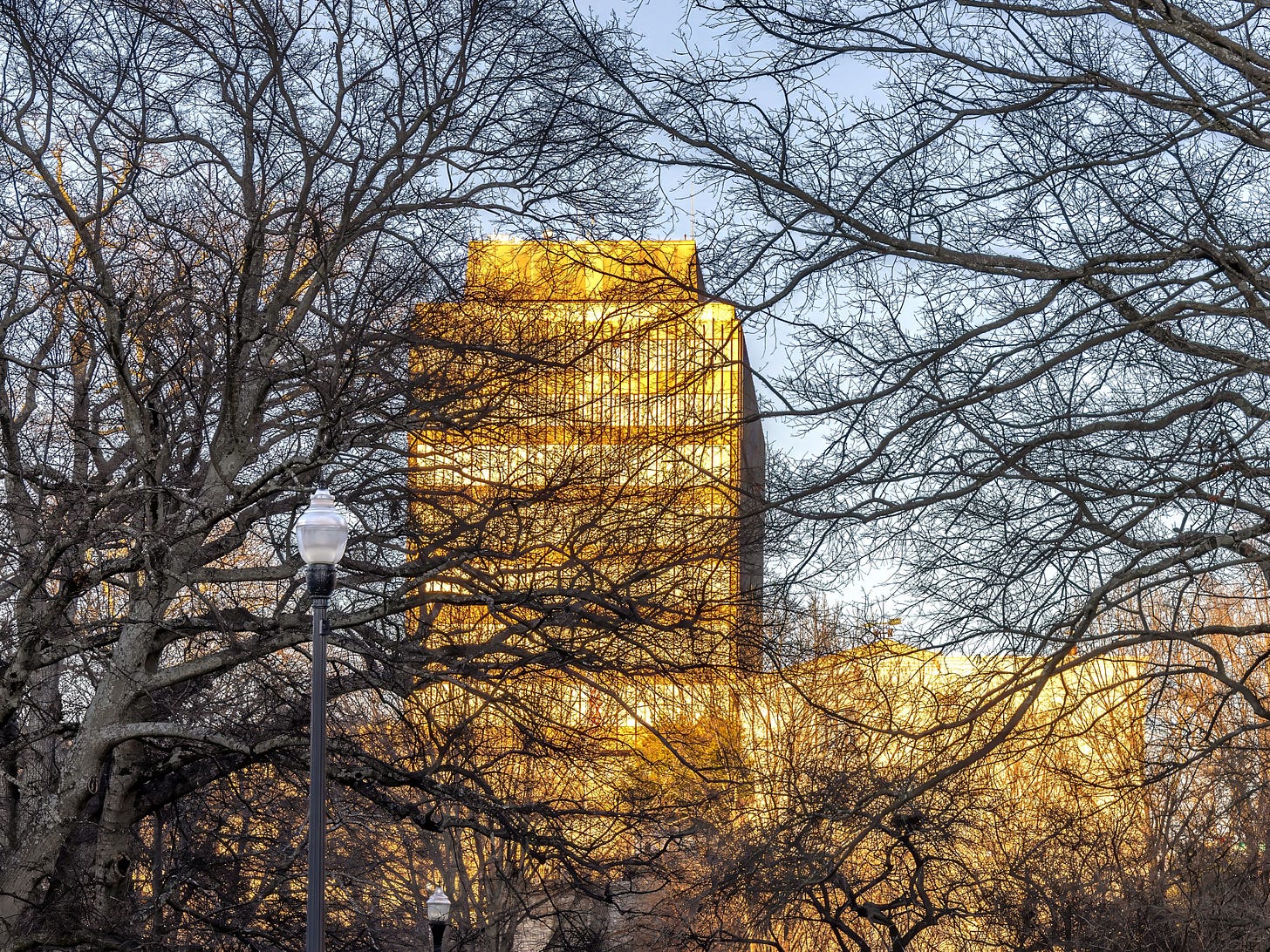 That evening, the courthouse mirrored the sky in a long, slow sunset show that drew to a close just before the lights of City Hall started to glow for the evening. It’s really hard to see this reflective beauty from the street below, and that’s something I’d like to see changed in a potential renovation.